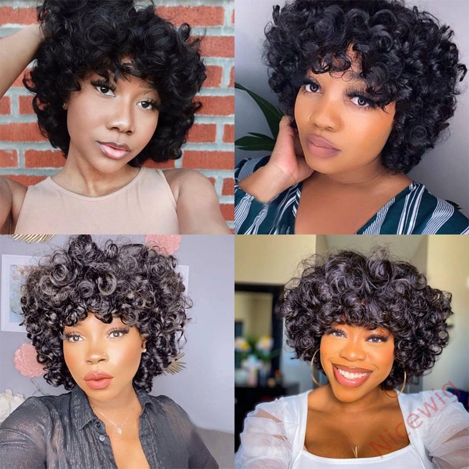 Kinky Curly Wigs With Bangs Fluffy African Ombre Glueless Wigs
