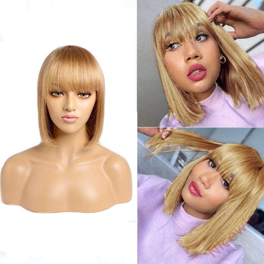 Glueless Short Bob Wig With Bangs Straight Brazilian Hair Wigs