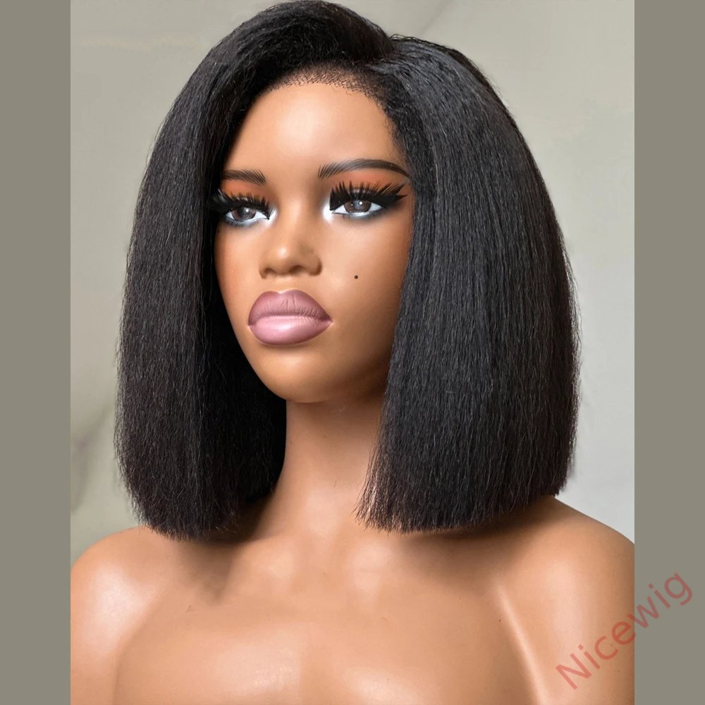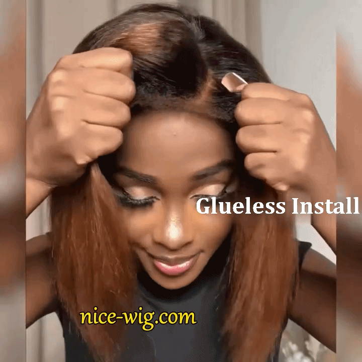 Glueless Lovely Black Gradient Light Brown Natrual Bob Styles Silky Yaki Hair Wig