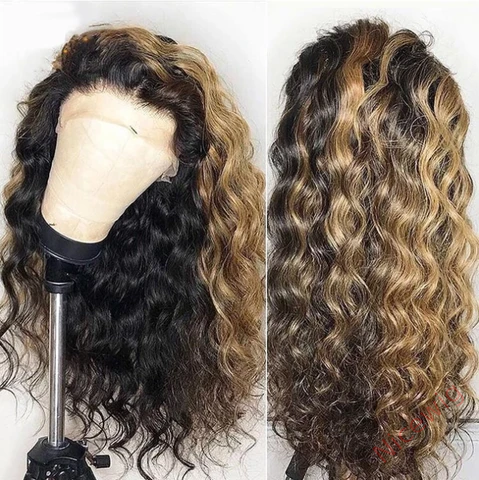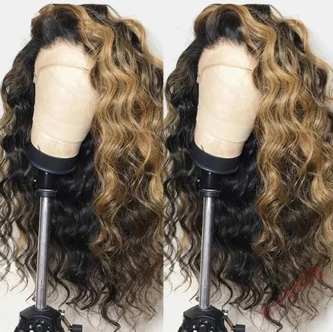 Black Mixed Blonde Long Wave Wig