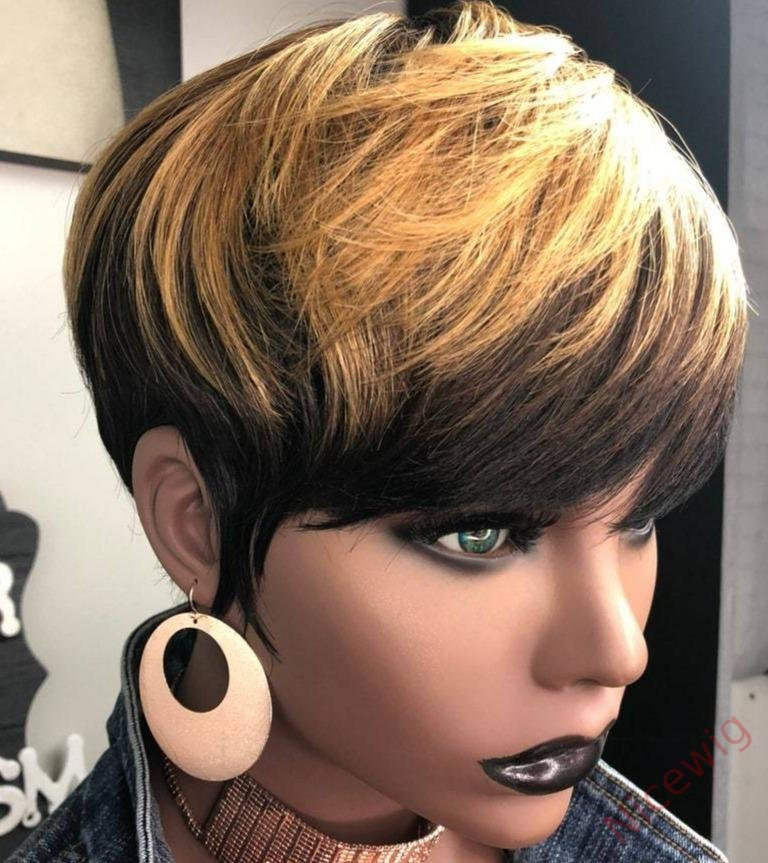 Black Gold Short Straight Bob Pixie Cut Hair Wig