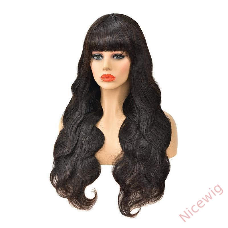 Black Long Hair Loose Deep Wave Wigs with Bangs for Black Women