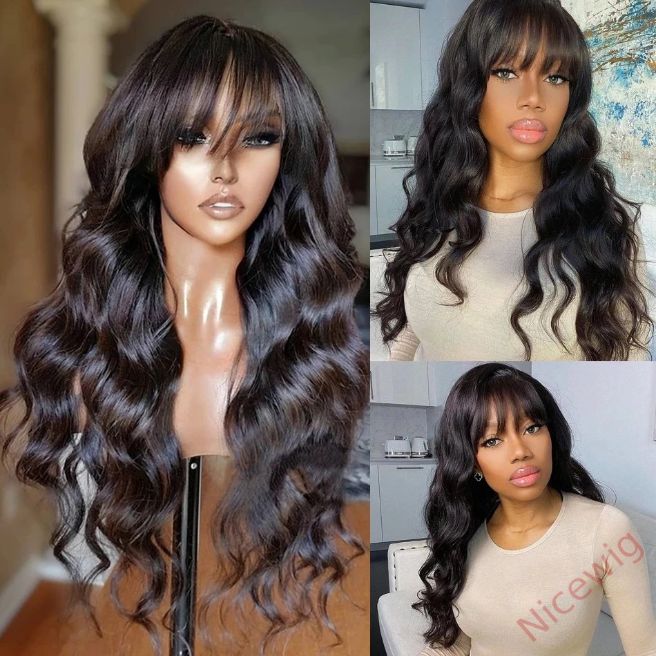 Glueless Black Long Hair Loose Deep Wave Wigs with Bangs
