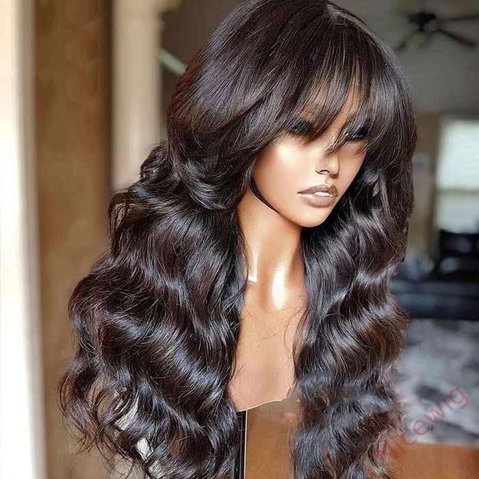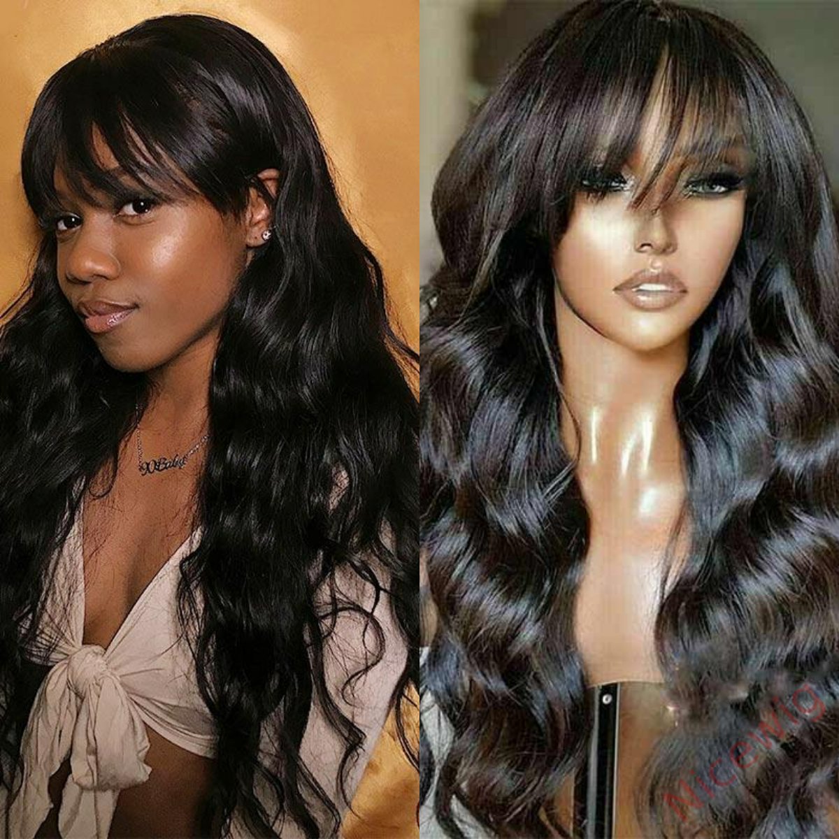 Brazilian Body Wave With Bangs Black Women Glueless Machine Made Remy Wigs
