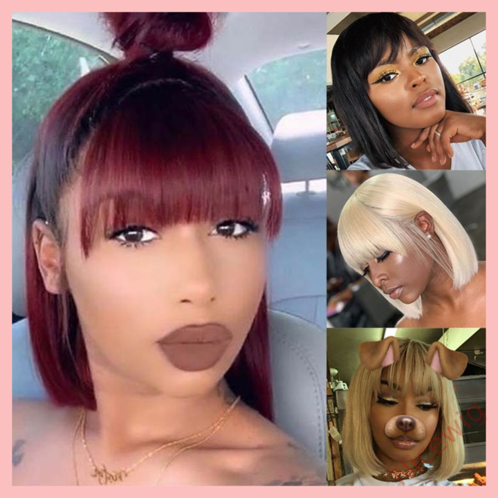 Colorful Brazilian Straight Hair Short BOB Wigs Lady Wig With Bangs