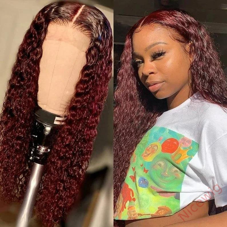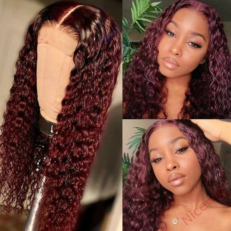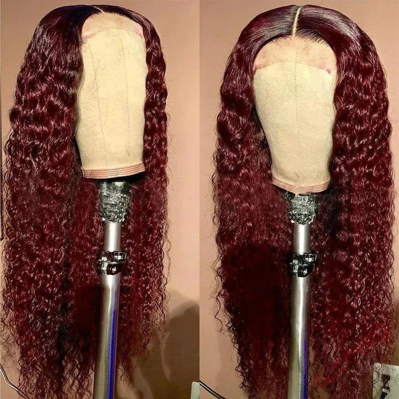 Brazilian Wine Red Long Hair Water Wave Curly Wig