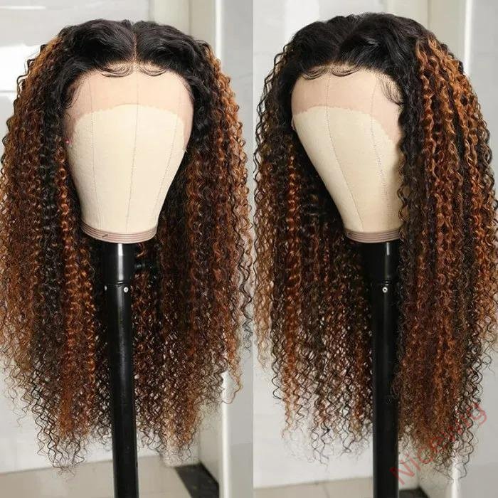 Brown Mixed Blonde Brazilian Water Wave Curly Wigs
