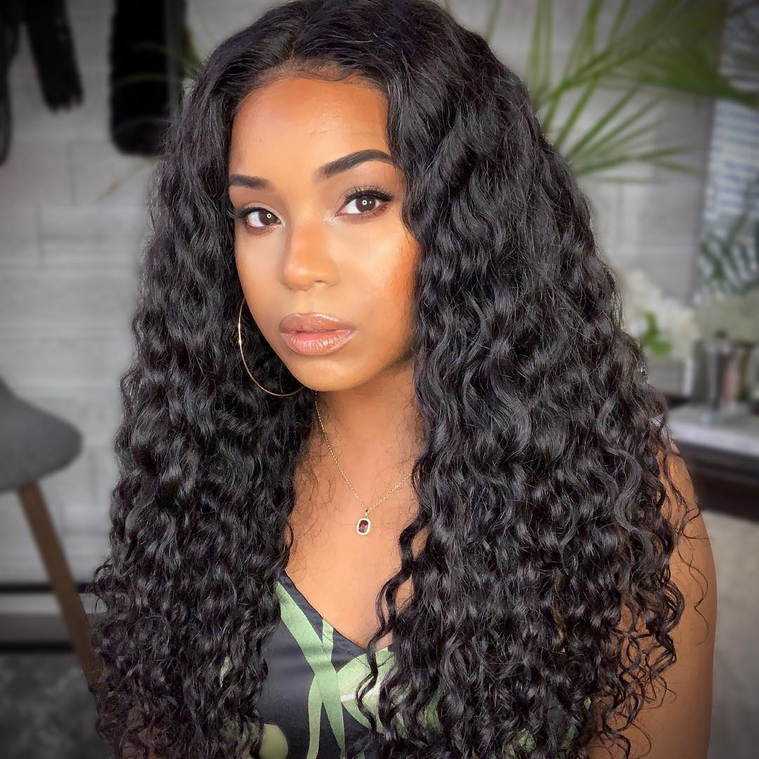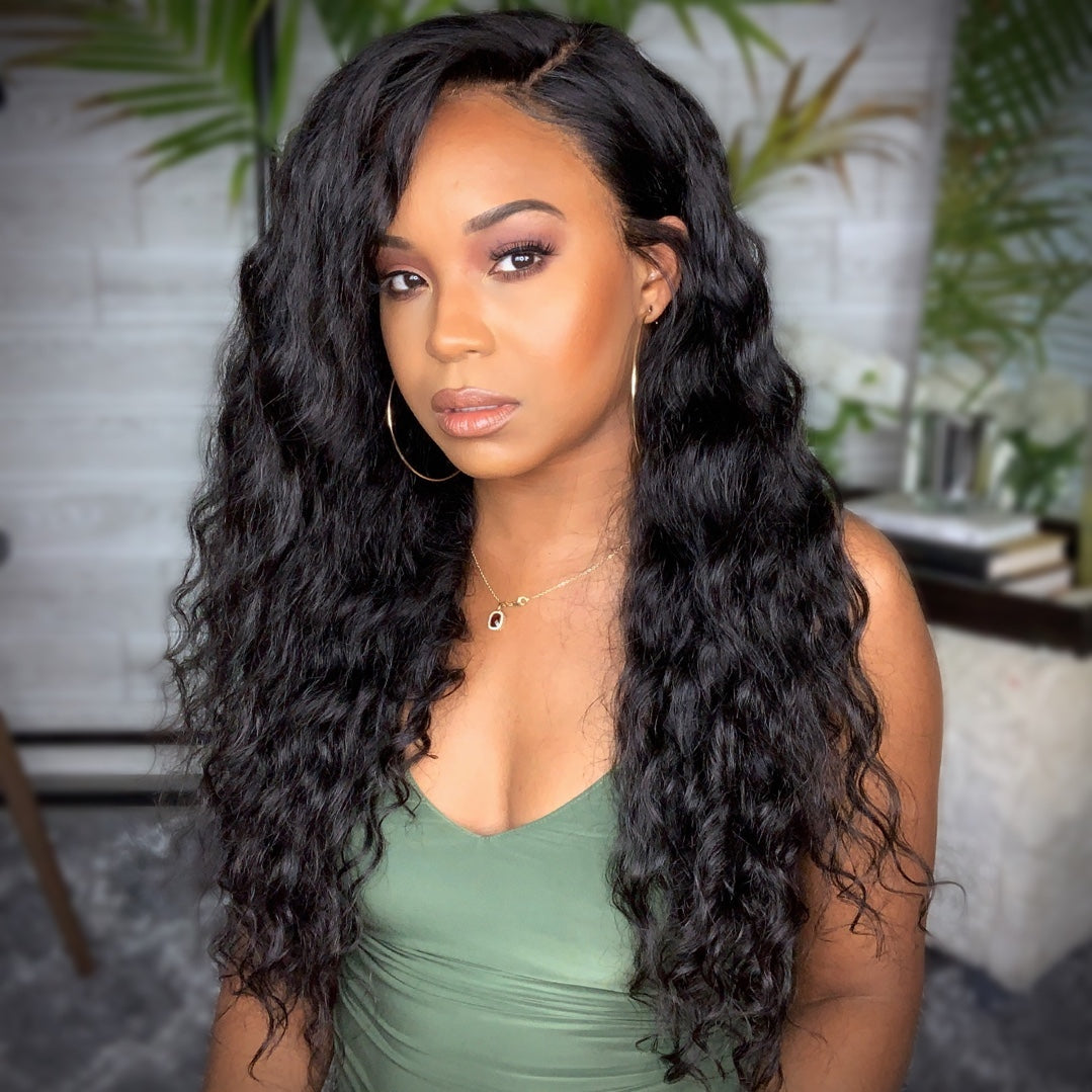 Black Brazilian Water Wave Long Curly Wigs