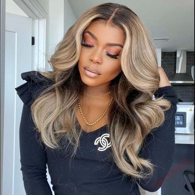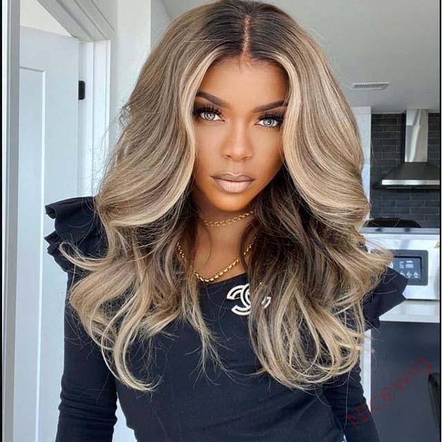 Brown Mixed Blonde Long Wigs Remy Wave Hair