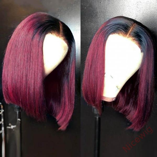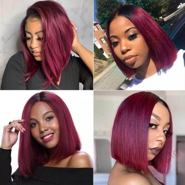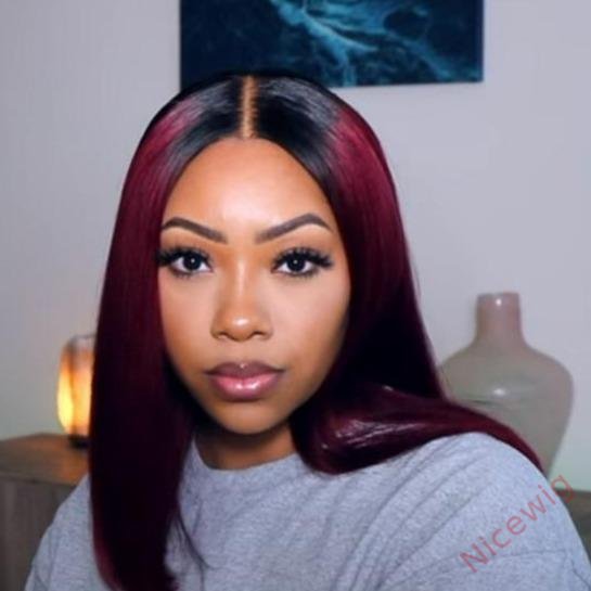 Burgundy Black Gradient Red Centre Parting Long Hair Straight Wig