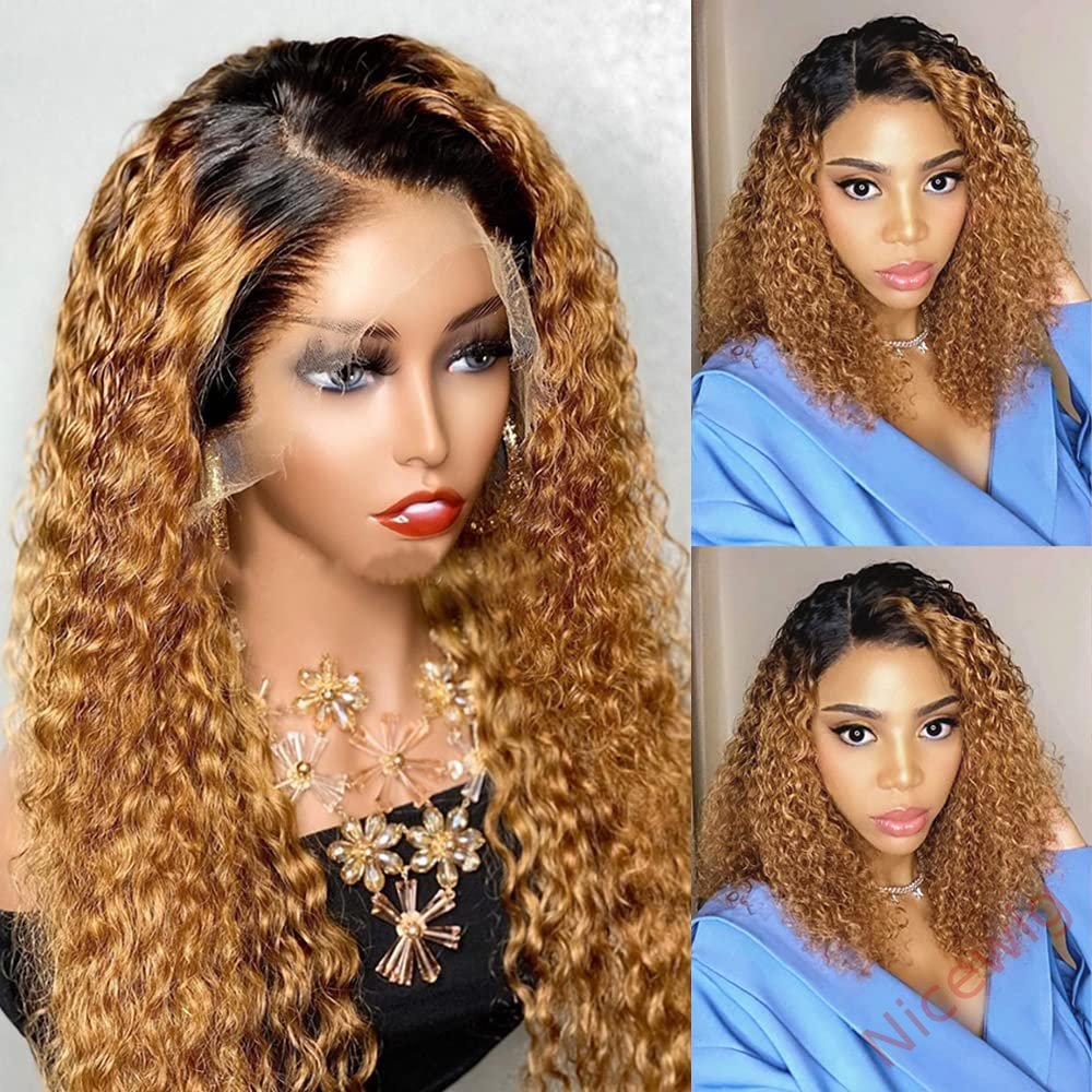 Glueless Black Gradient Light Brown Brazilian Curly Wigs