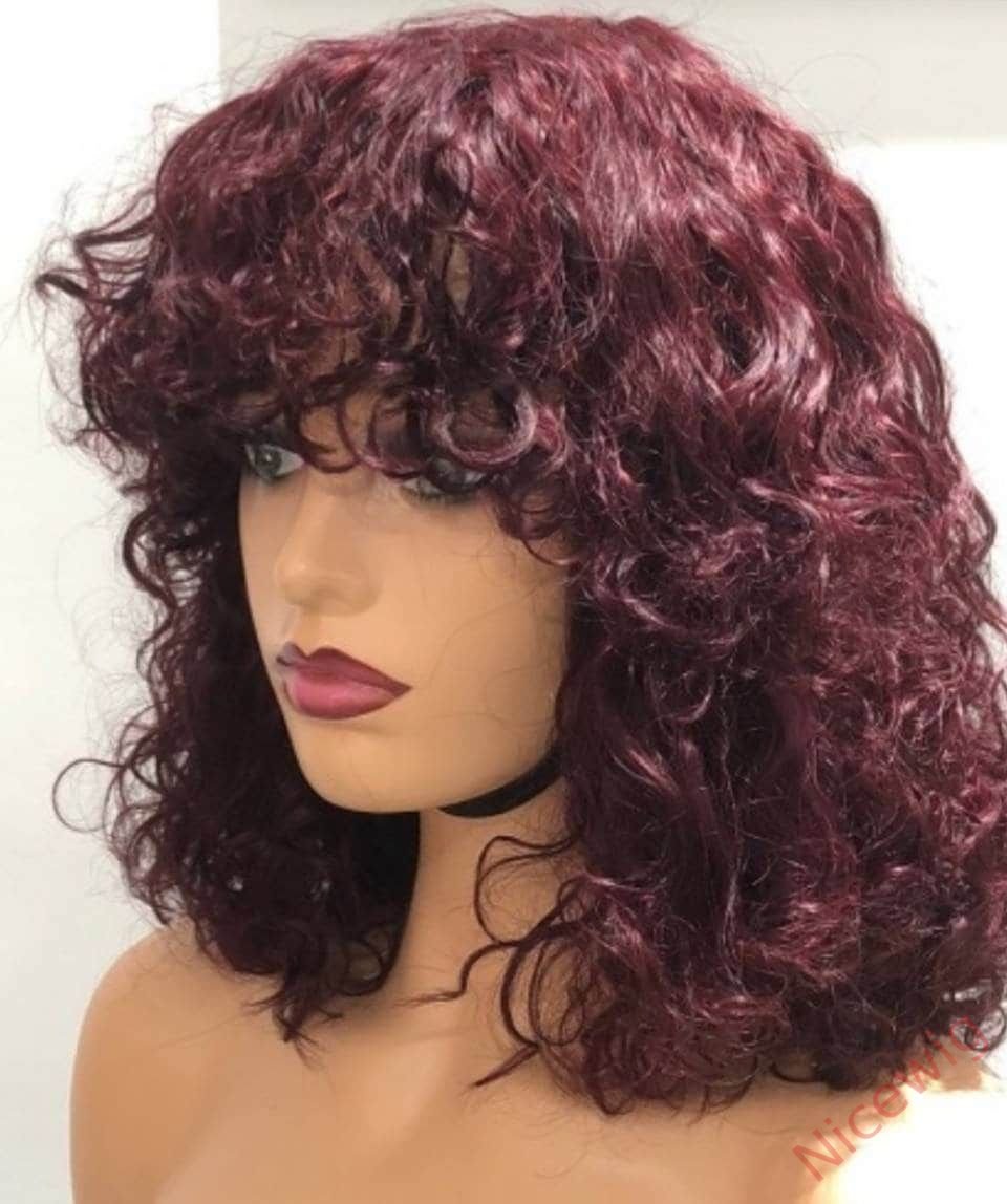 Glueless Brazilian Curly Hair Wig With Bangs Glueless Wig