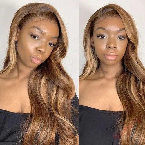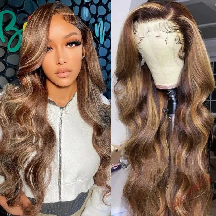 New Glueless Brown Mixed Blonde Highlights Loose Wave Long Wig