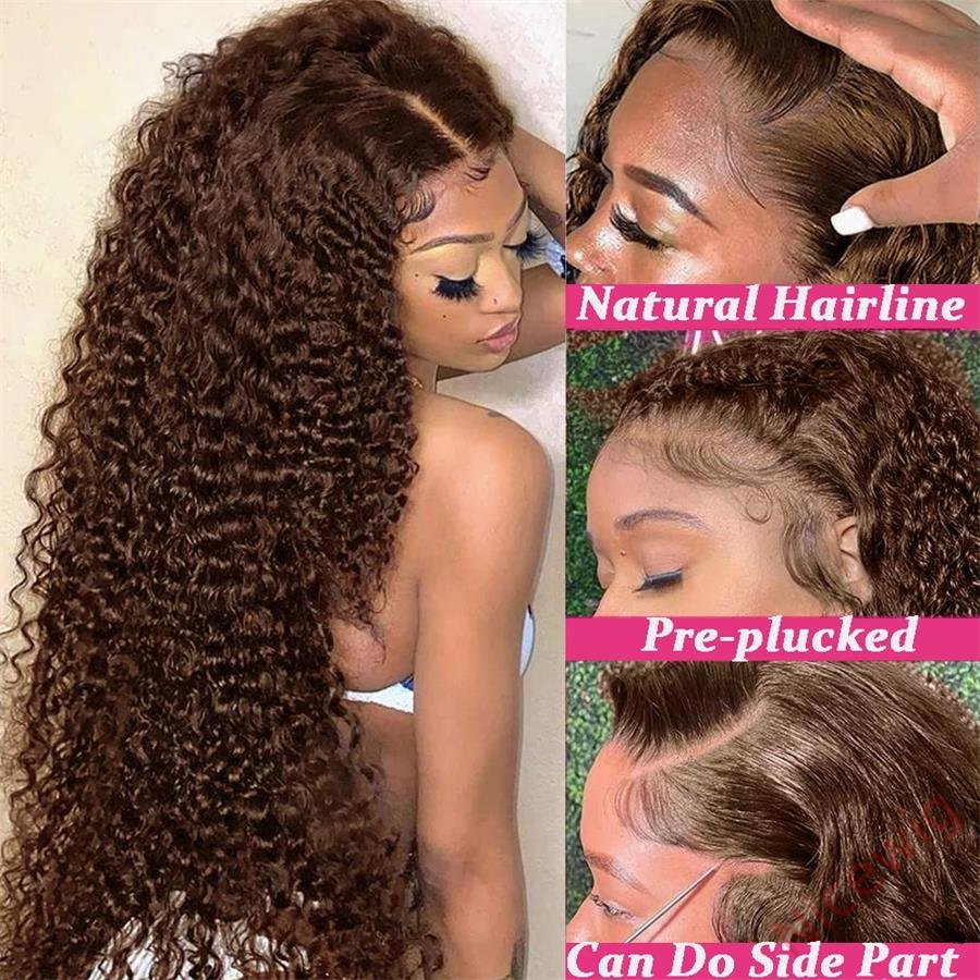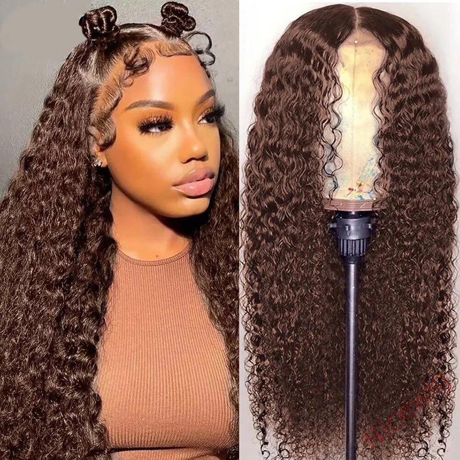 Glueless Dark Brown Brazilian Water Wave Long Curly Wigs