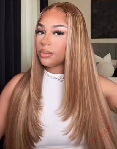 Glueless Hightlight Mixed Blonde Long Hair Straight Wig