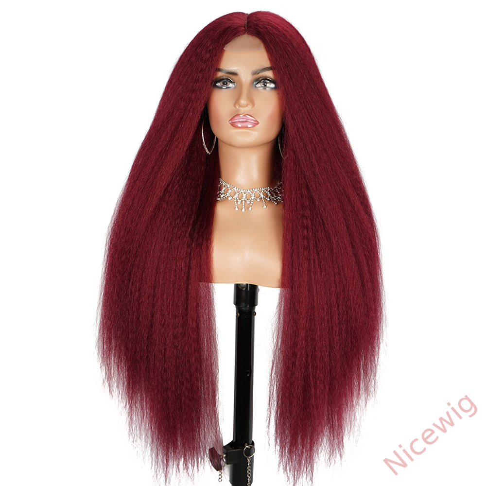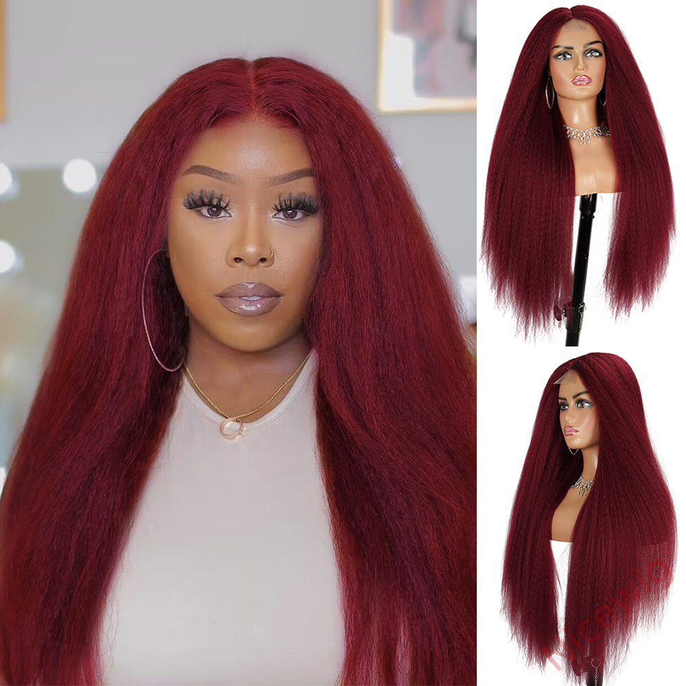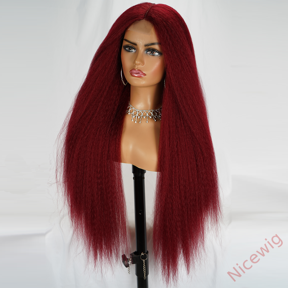 Glueless Wine Red Kinky straight 200% density brazilian Yaki Wig