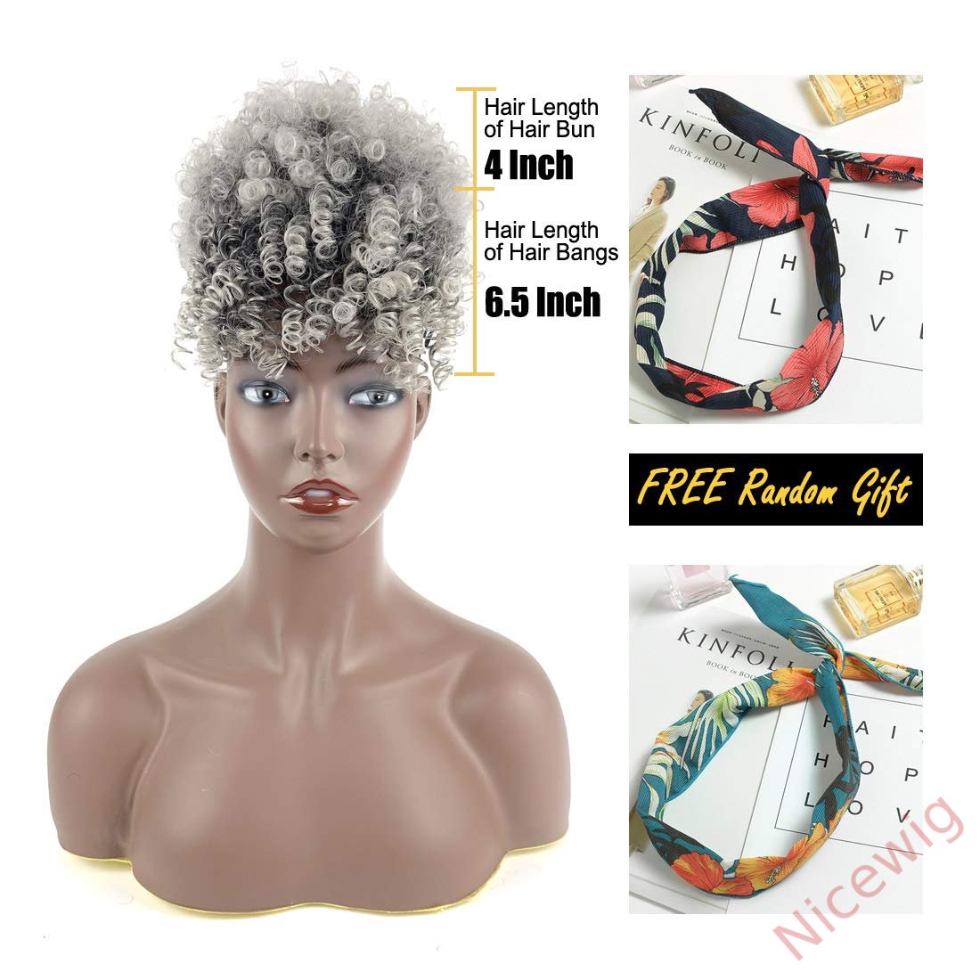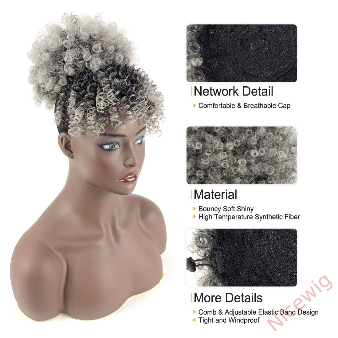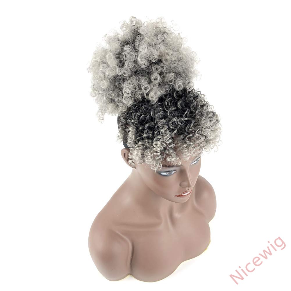 Gray Afro Puff Drawstring Ponytail with Bangs Wigs