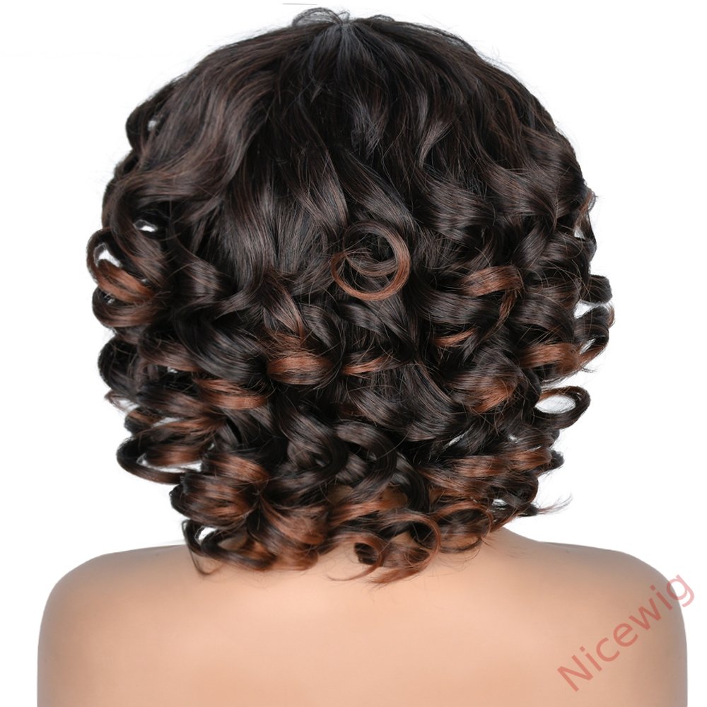 Kinky Curly Wigs With Bangs Fluffy African Ombre Glueless Wigs