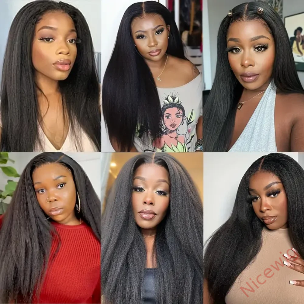 Kinky Yaki straight 200% density glueless brazilian black wigs