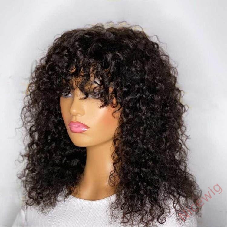 Light Brown/Black Color Brazilian Remy Curly Hair Wig With Bangs