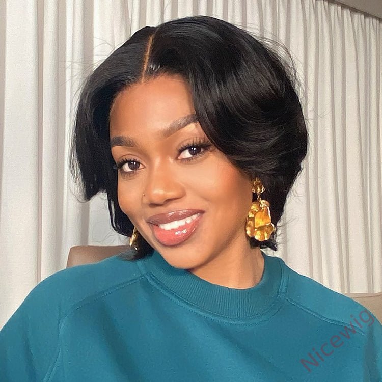 New Glueless Short Wavy Bob Hair Natural Black Wig