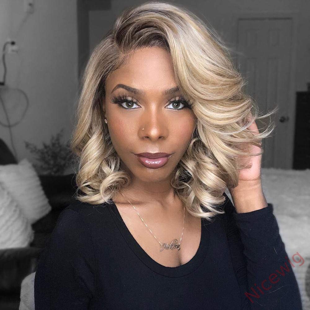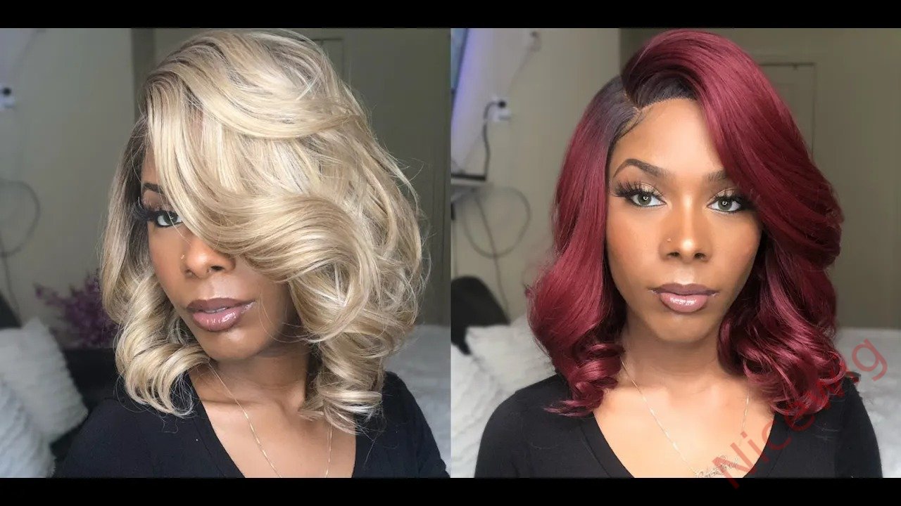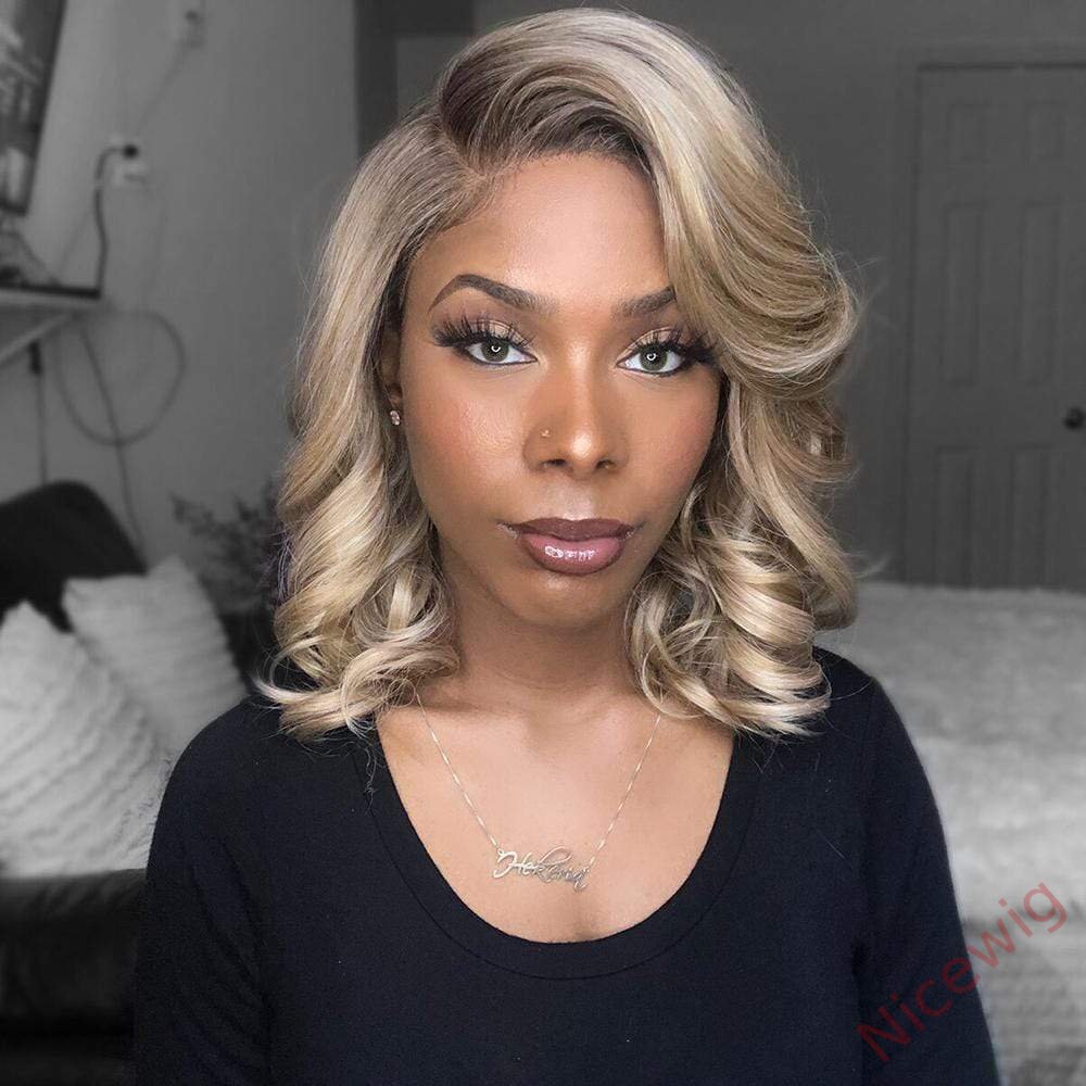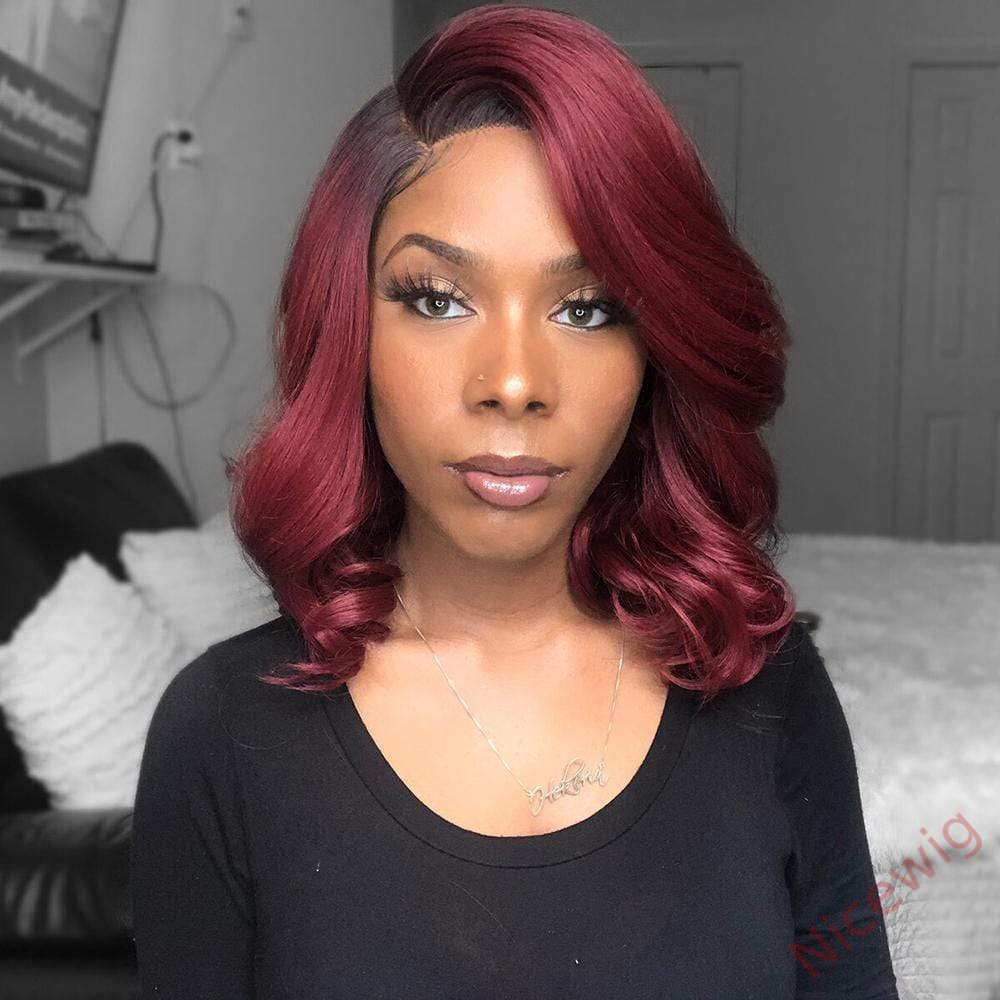 Wine Red/Blonde Short Bob Body Wave Wig For Women