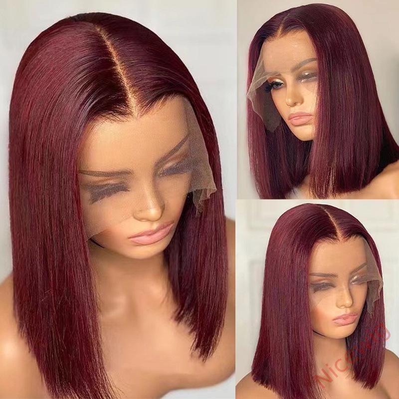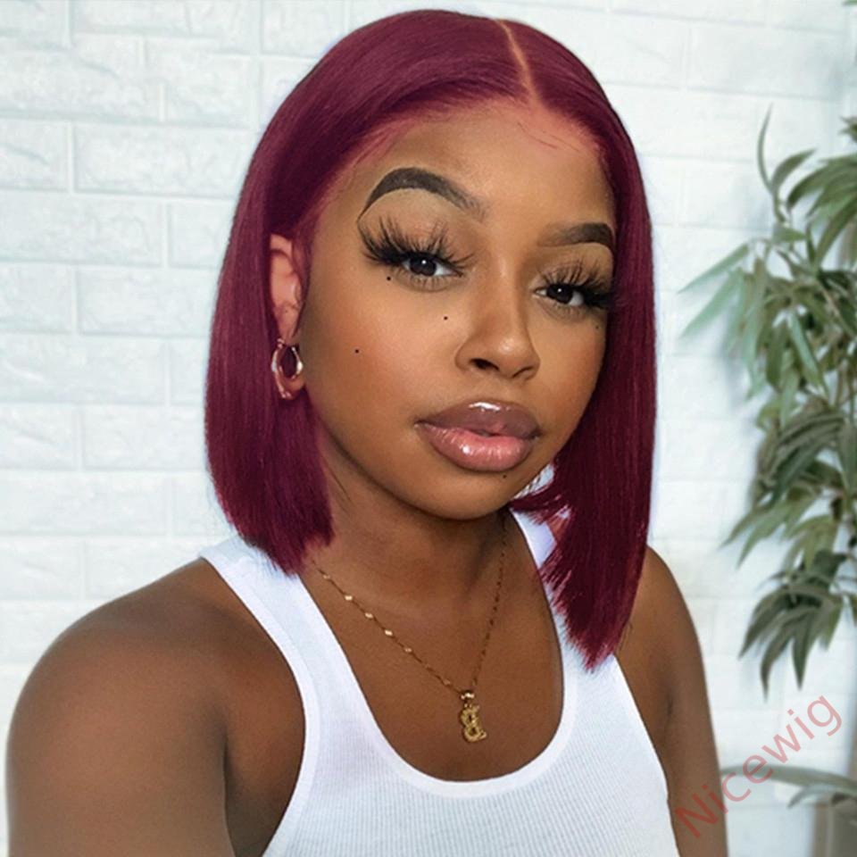Wine Red Brazilian Straight Hair BOB Wigs Lady Wig