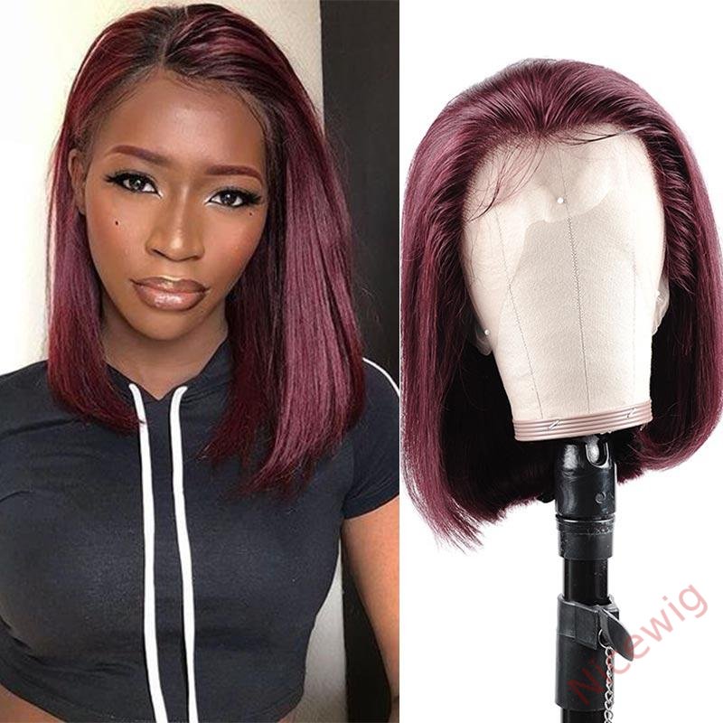 Wine Red Brazilian Straight Hair BOB Wigs Lady Wig